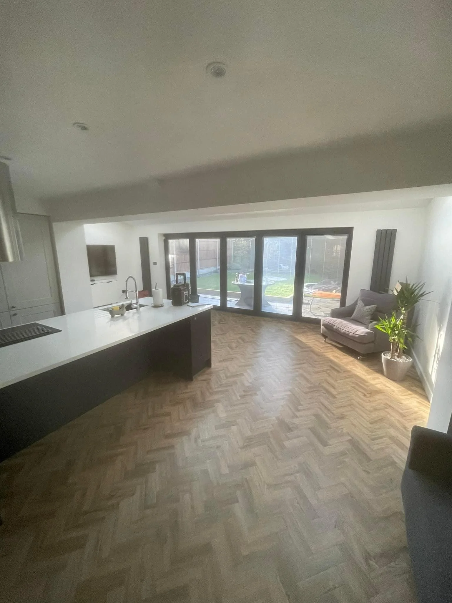 Another outstanding extension project successfully delivered by the LMR team. New kitchen installation completed to the highest standards. Aluminum bi-fold doors with integral blinds added for a modern touch.